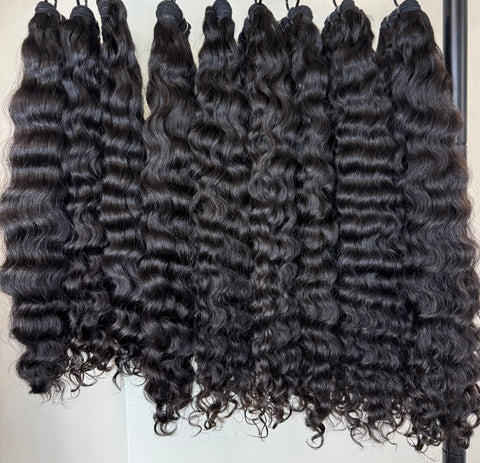 Our Burmese Curly bundles are known for their beautiful curl pattern, soft feel, and full voluminous look.  The curls maintain their shape after shampooing, giving you long lasting definition, shine, and movement.  Each bundle offers a natural, luxurious texture that blends well with a wide range of hair types and installs beautifully for both sew-ins and wig creations.
